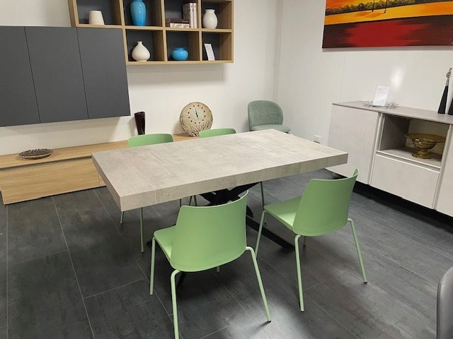 Colore: cemento spazzolato, basamento nero, sedie verdi
